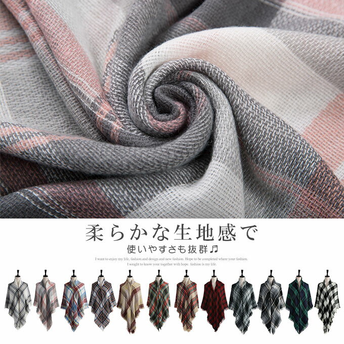 [イニシャル刺繍無料★]【宅配便配送】マフラー レディース ストール 大判ストール ポンチョ 大判 ストール チェック 無地 秋冬 厚手 かわいい イニシャル 刺繍 プレゼント ギフト(イニシャル刺繍 大判チェックストール)【あす楽対応】