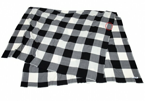 コムコム コムデギャルソンCOMME des GARCONS ブロックチェック大判ストール 黒グレーオフ【中古】 【レディース】