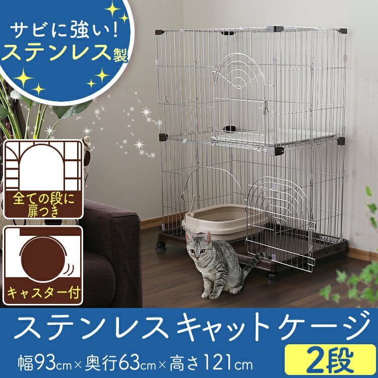 猫の飼育に適した2段タイプです!移動するのに便利なキャスター付きです。