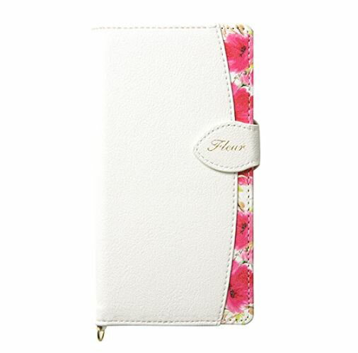 iPhoneXR用ケース寸法 幅8.5cm 高さ15.6cm 厚さ1.6cm曲線から覗く花柄が裏まで続き、ケースを開くと華やかに花が咲くデザイン。
